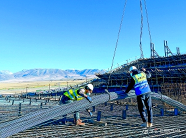 10月14日,施工人员在巴音布鲁克机场项目航站楼屋面施工。该机场建成后,将进一步促进和静县经济发展。 □李雯摄