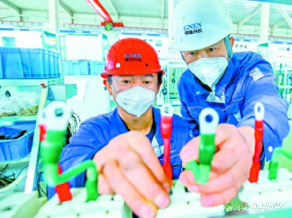 10月17日,在位于呼图壁县二十里店镇新兴产业园区的新疆赣能电气科技有限公司生产车间正在开足马力生产。 □陶维明摄