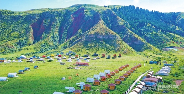 温宿县柯柯牙镇塔格拉克村“归园田居·塔村”景区(8月10日无人机摄)。今年以来,阿克苏文化旅游发展集团有限公司持续提升“归园田居·塔村”乡村旅游品牌形象、完善景区功能,吸引众多游客前来打卡。截至8月10日,该景区今年已接待游客46万人次。 □艾则孜·沙木沙克摄