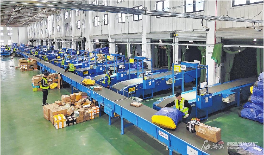 4月4日,工作人员在中通快递新疆智能科技电商快递产业园分拣快递。目前,该产业园设有800多个小车分拣格口用以快速分拣快递,效率提高了一倍多。今年一季度,中通快递在全疆的快递寄出量和派送总量与去年同期相比增加三成。 □石榴云/新疆日报记者邹懿摄