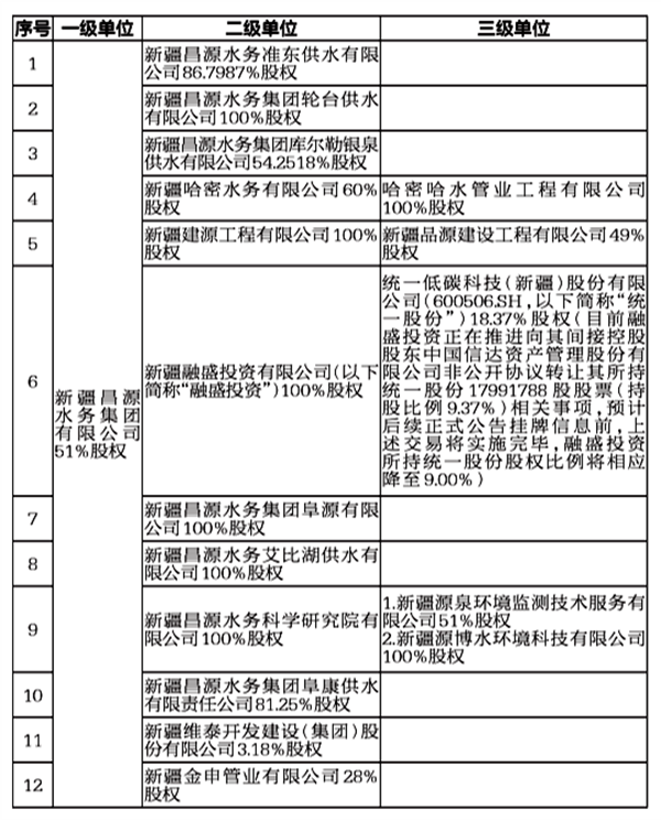 截至本公告发布之日,昌源水务及其下属控股及参股企业包括: