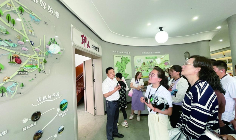 新疆高素质农民“休闲农业与乡村旅游”高层次人才专题培训班学员,在湖南省长沙县江背镇印山村了解农文旅融合发展状况(2024年4月24日摄)。□图片由新疆农业职业技术大学提供