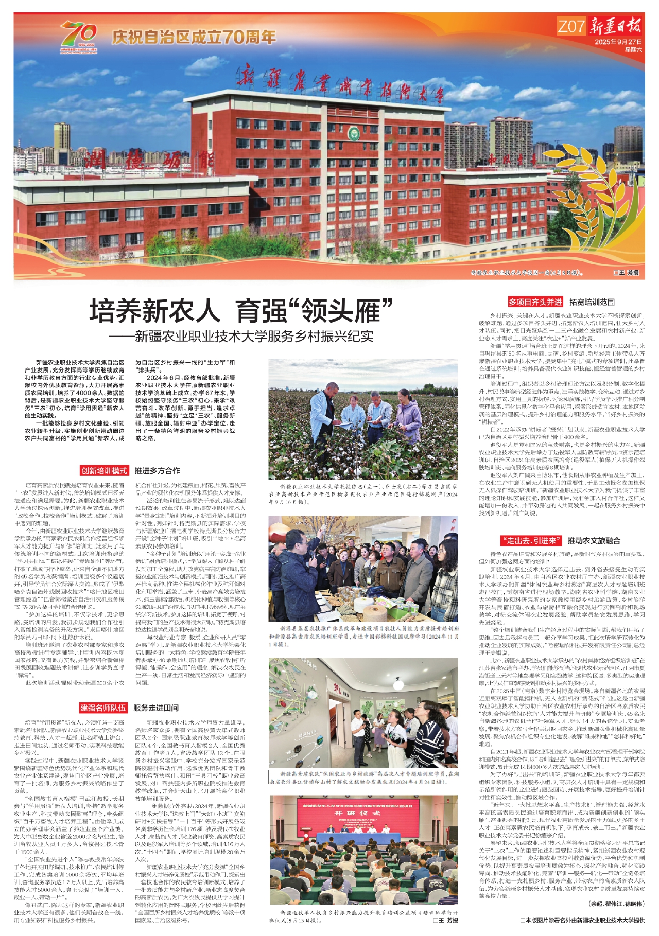 新疆农业职业技术大学充分发挥“全国乡村振兴人才培养优质校”示范带动作用,探索出一套校地合作的农民教育培训新模式,培养了一批素质能力与乡村新产业、新业态高度契合的高素质农民,为广大农牧民提供从学习提升到转化应用的闭环式服务。学校因此先后获得“全国百所乡村振兴人才培养优质校”等数十项国家级、自治区级称号。