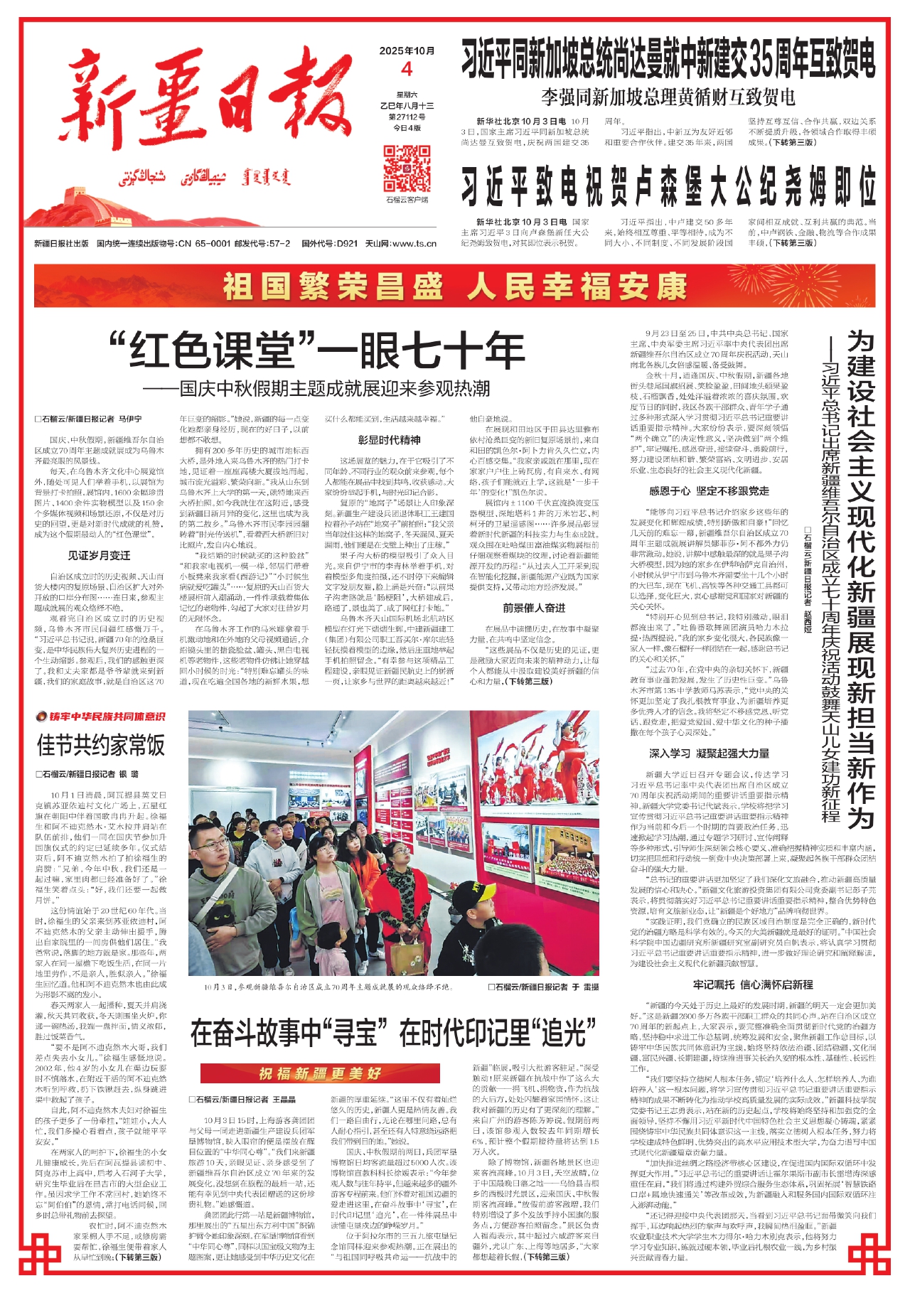 每天,在乌鲁木齐文化中心展览馆外,随处可见人们举着手机,以展馆为背景打卡拍照。展馆内,1600余幅珍贵图片、1400余件实物模型以及150余个多媒体视频和场景还原,不仅是对历史的回望,更是对新时代成就的礼赞,成为这个假期最动人的“红色课堂”。