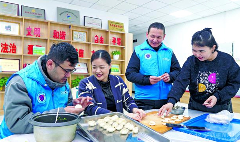 12月17日,乌苏市南苑街道塔城路社区党群服务中心邀请外卖骑手、网约车司机等新就业群体一起包饺子、话家常、迎冬至,其乐融融。 □李仁锡摄