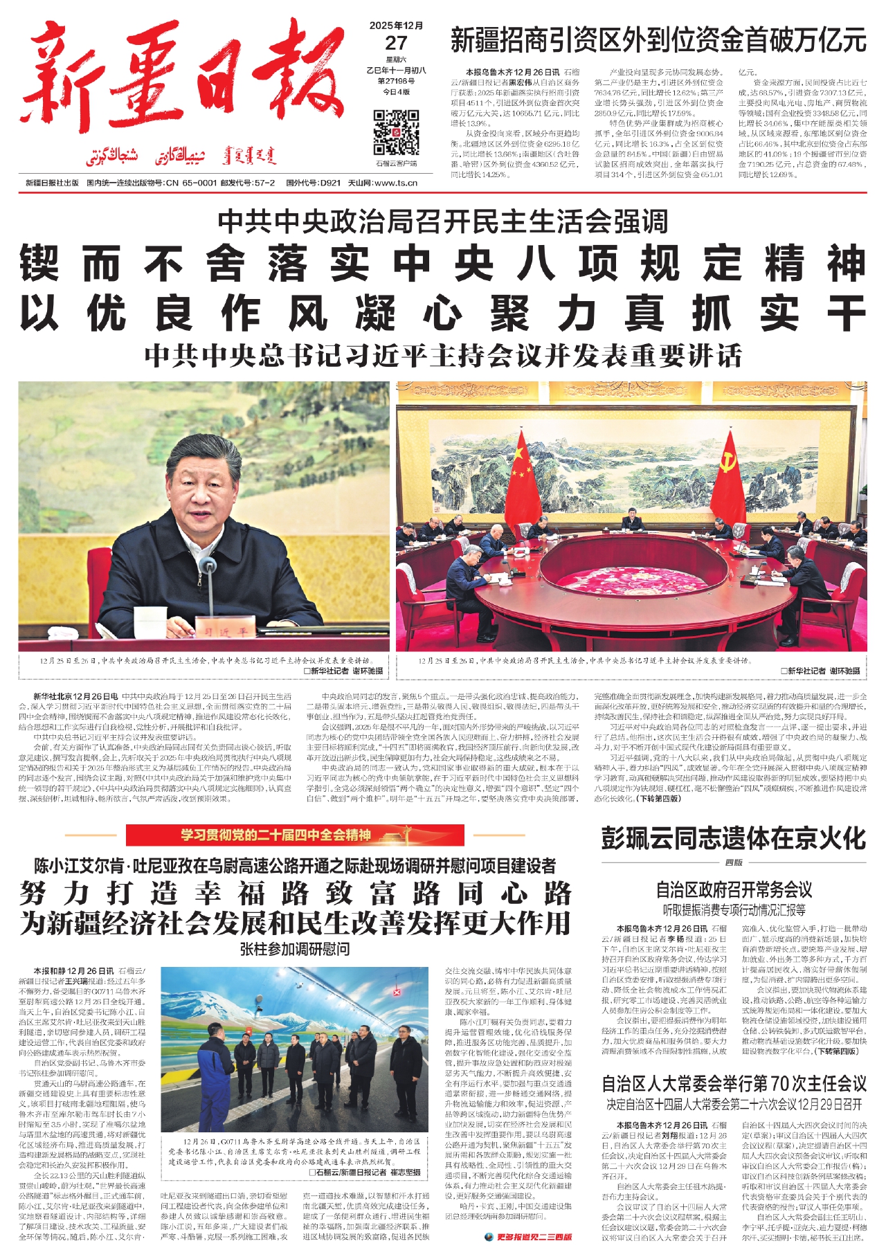新华社北京12月26日电 中共中央政治局于12月25日至26日召开民主生活会,深入学习贯彻习近平新时代中国特色社会主义思想,全面贯彻落实党的二十届四中全会精神,围绕锲而不舍落实中央八项规定精神,推进作风建设常态化长效化,结合思想和工作实际进行自我检视、党性分析,开展批评和自我批评。