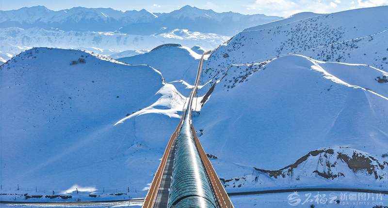 12月26日,在呼图壁县南部山区,新疆首条采用AI智能巡检技术的输煤廊道穿越山间。