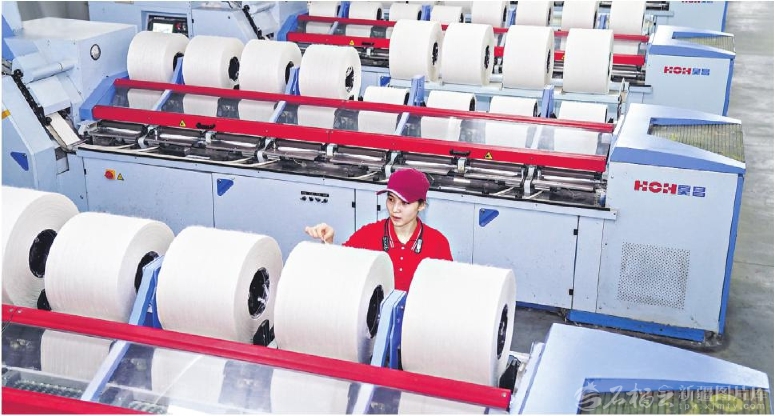 1月4日,工人在位于乌苏市的新润和纺织有限公司纺织车间作业。新年伊始,乌苏市各纺织企业一派繁忙景象,全力冲刺新年“开门红”。□李仁锡摄