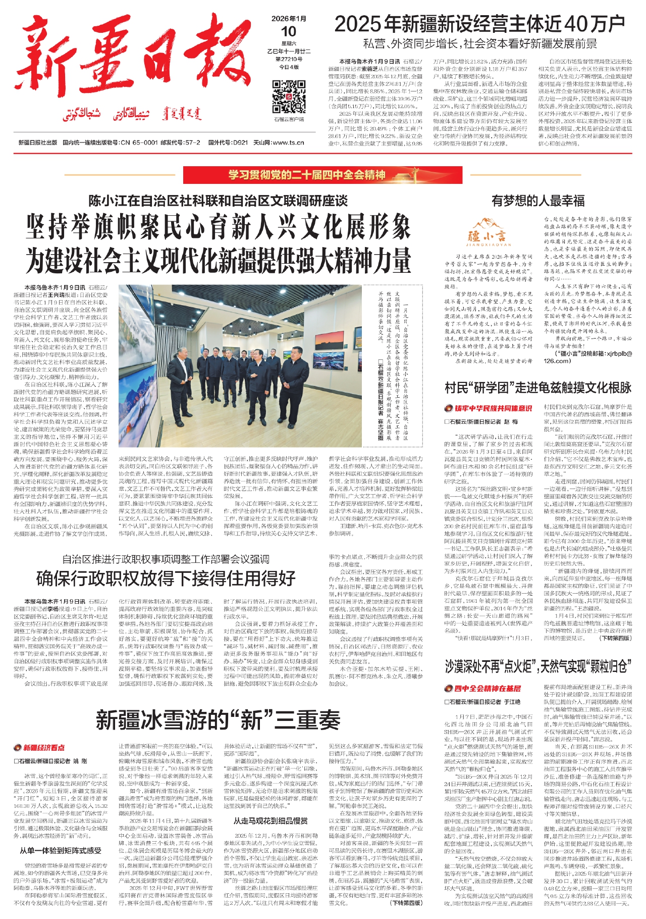 本报乌鲁木齐1月9日讯 石榴云/新疆日报记者王兴瑞报道:自治区党委书记陈小江1月9日在自治区社科联、自治区文联调研并座谈,向全区各族哲学社会科学工作者、文艺工作者致以亲切问候。他强调,要深入学习贯彻习近平文化思想,自觉肩负起举旗帜、聚民心、育新人、兴文化、展形象的使命任务,牢牢扭住社会稳定和长治久安工作总目标,围绕铸牢中华民族共同体意识主线,推动新时代文艺社科事业高质量发展,为建设社会主义现代化新疆提供强大价值引导力、文化凝聚力、精神推动力。