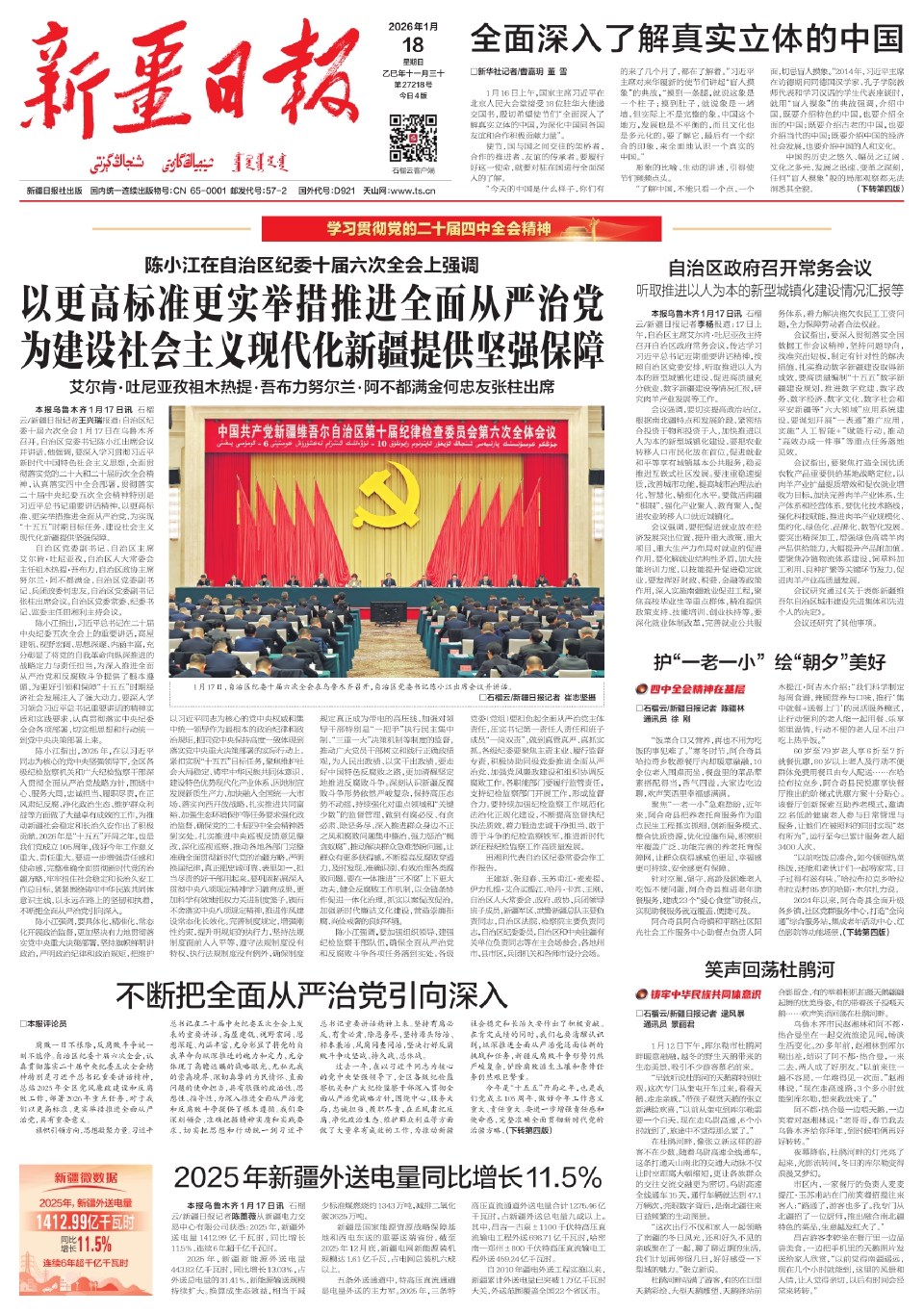 本报乌鲁木齐1月17日讯 石榴云/新疆日报记者王兴瑞报道:自治区纪委十届六次全会1月17日在乌鲁木齐召开,自治区党委书记陈小江出席会议并讲话。他强调,要深入学习贯彻习近平新时代中国特色社会主义思想,全面贯彻落实党的二十大和二十届历次全会精神,认真落实四中全会部署,贯彻落实二十届中央纪委五次全会精神特别是习近平总书记重要讲话精神,以更高标准、更实举措推进全面从严治党,为实现“十五五”时期目标任务、建设社会主义现代化新疆提供坚强保障。