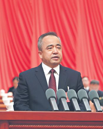各位代表!回望辉煌历程,我们砥砺奋进、成绩斐然,展望美好未来,我们信念如磐、斗志昂扬。让我们更加紧密地团结在以习近平同志为核心的党中央周围,坚持以习近平新时代中国特色社会主义思想为指导,在自治区党委领导下,完整准确全面贯彻新时代党的治疆方略,以铸牢中华民族共同体意识为主线,锚定“五大战略定位”,守正创新、实干担当,勠力同心、勇毅前行,在新起点上努力建设团结和谐、繁荣富裕、文明进步、安居乐业、生态良好的社会主义现代化新疆,为强国建设、民族复兴伟业作出新的更大贡献!