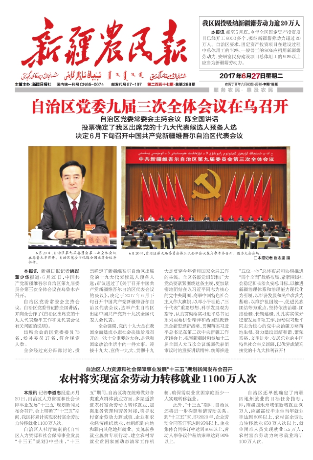 自治区党委九届三次全体会议在乌召开