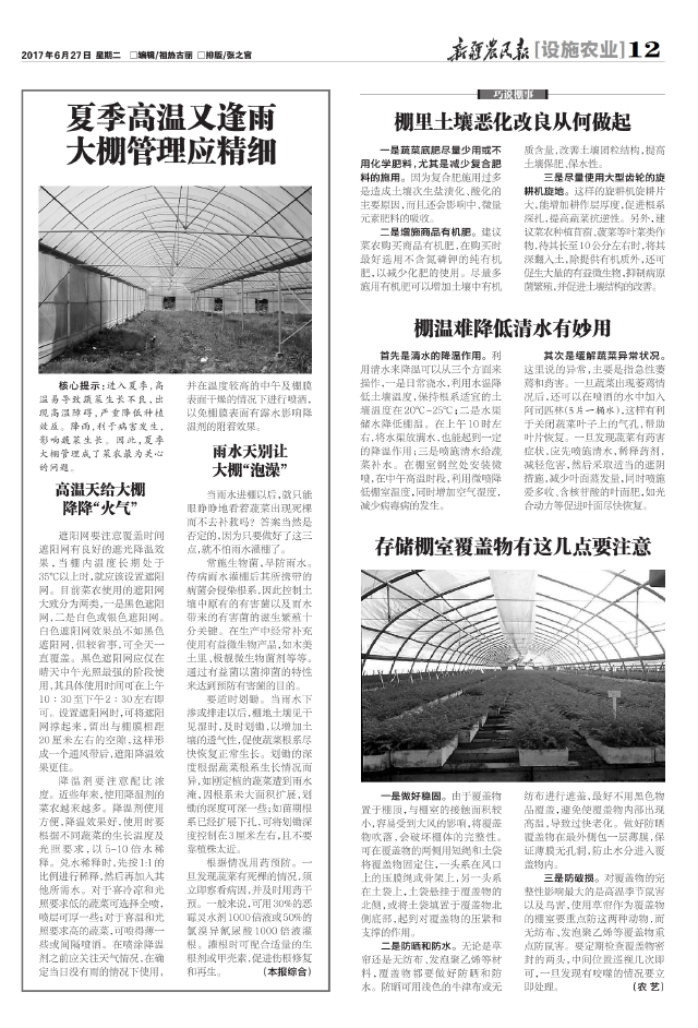 夏季高温又逢雨大棚管理应精细|高温天给大棚降降“火气”|雨水天别让大棚“泡澡”