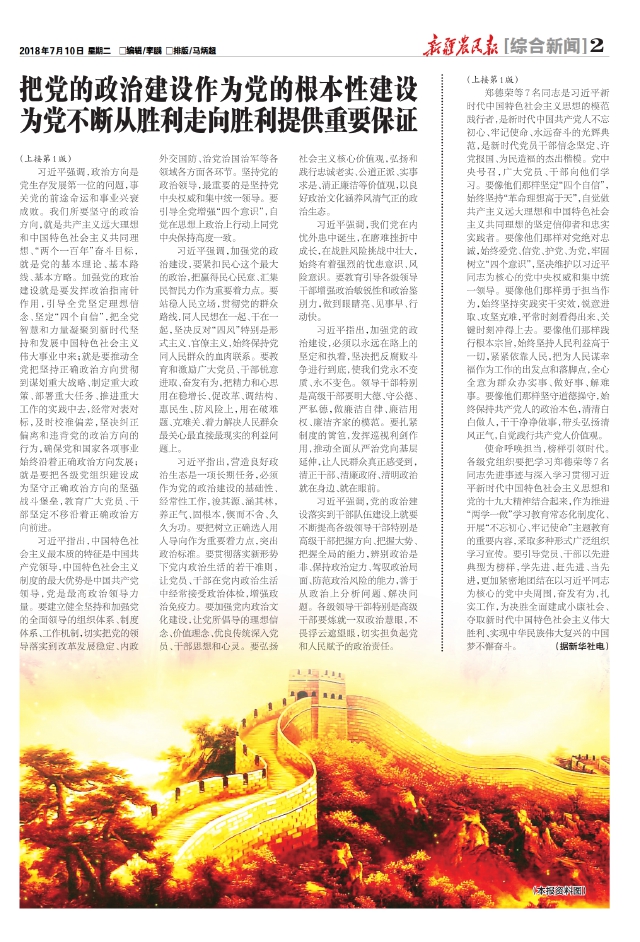 把党的政治建设作为党的根本性建设为党不断从胜利走向胜利提供重要保证