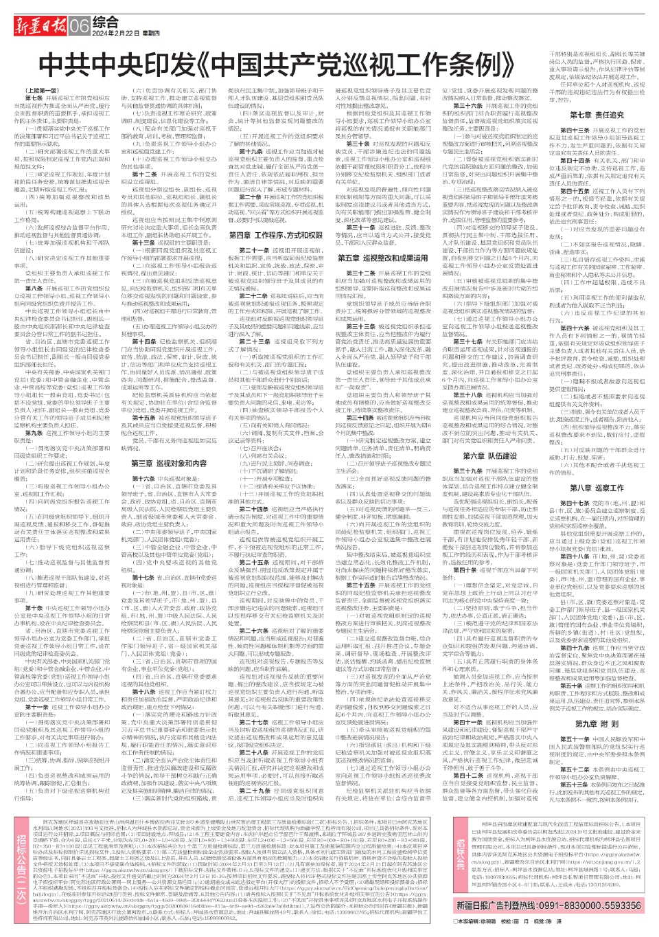 中共中央印发《中国共产党巡视工作条例》