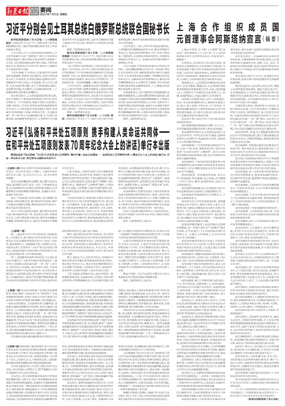 上海合作组织成员国元首理事会阿斯塔纳宣言(摘要)
