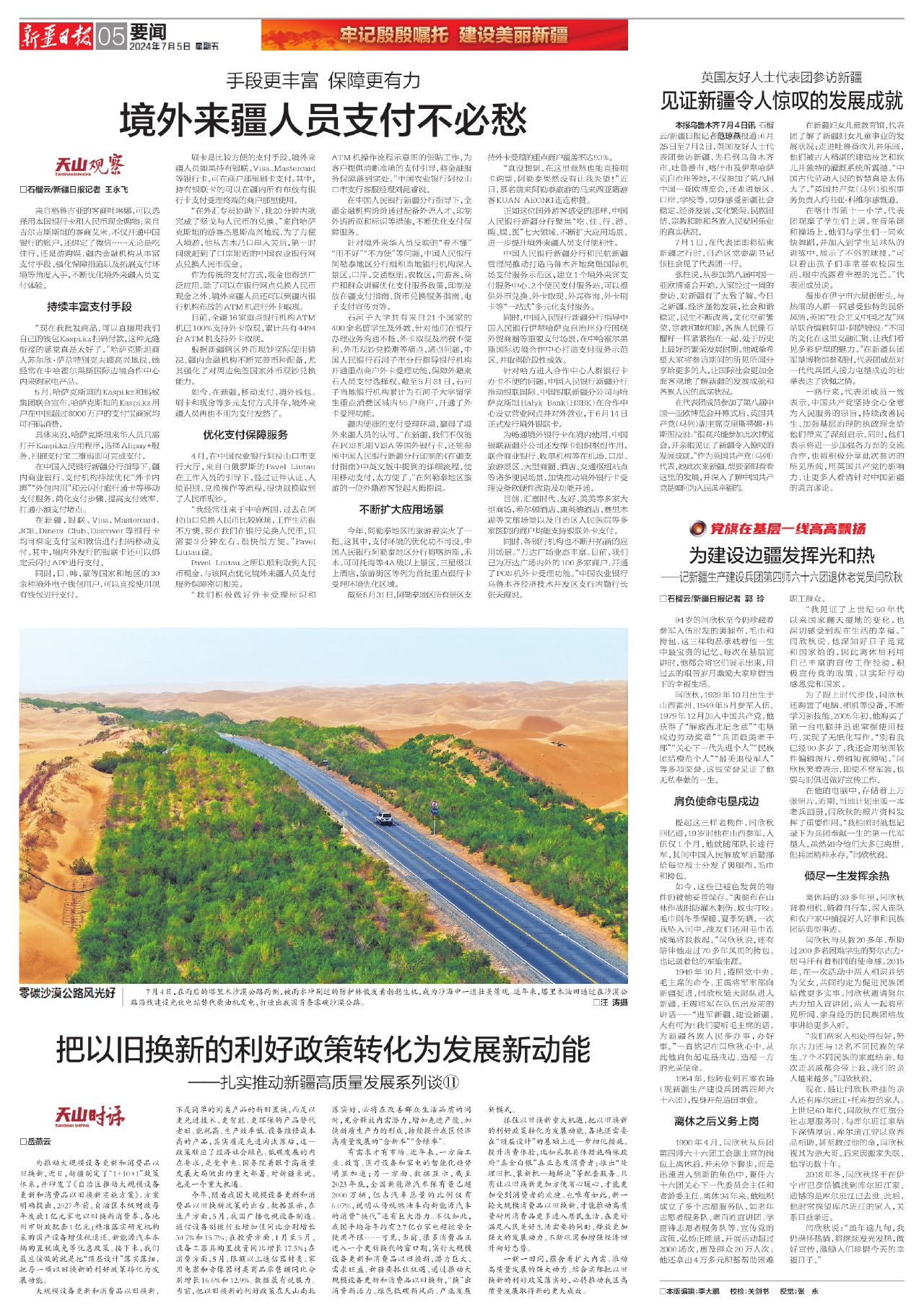 本报乌鲁木齐7月4日讯 石榴云/新疆日报记者范琼燕报道:6月25日至7月2日,英国友好人士代表团参访新疆,先后到乌鲁木齐市、吐鲁番市、喀什市及伊犁哈萨克自治州等地,不仅参加了第八届中国—亚欧博览会,还走进景区、口岸、学校等,切身感受新疆社会稳定、经济发展、文化繁荣、民族团结、宗教和睦和各族人民安居乐业的真实状况。