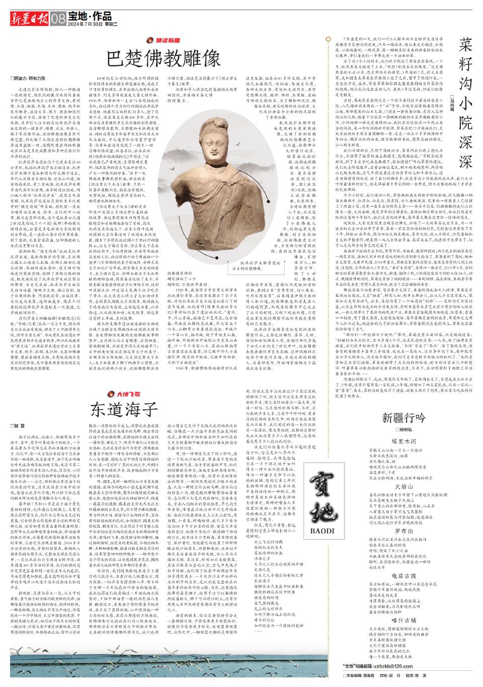 让我们记住屡次寻而不遇的东道海子吧,它总是令人寻而不遇的。想到它,我难免想起它在一片干涸之地中如何作为一种不屈不挠的象征,作为一种诸多生命可以依赖的证据,想到它身上所代表的那种对我们生存环境中柔弱性情的一种矫正,那种对易逝生命易褪色泽的无情否定,那种对嘈杂人声喧嚣环境的一种微不可察的轻嘲或是不在乎,这都为它增添了魅力。