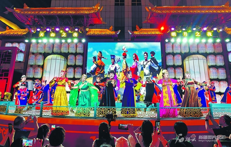 当日晚,乌鲁木齐天山明月城热闹非凡,首届中国新疆民间艺术季核心活动——民间艺术演员巡游演出在此亮相。□石榴云/新疆日报记者周鹏摄