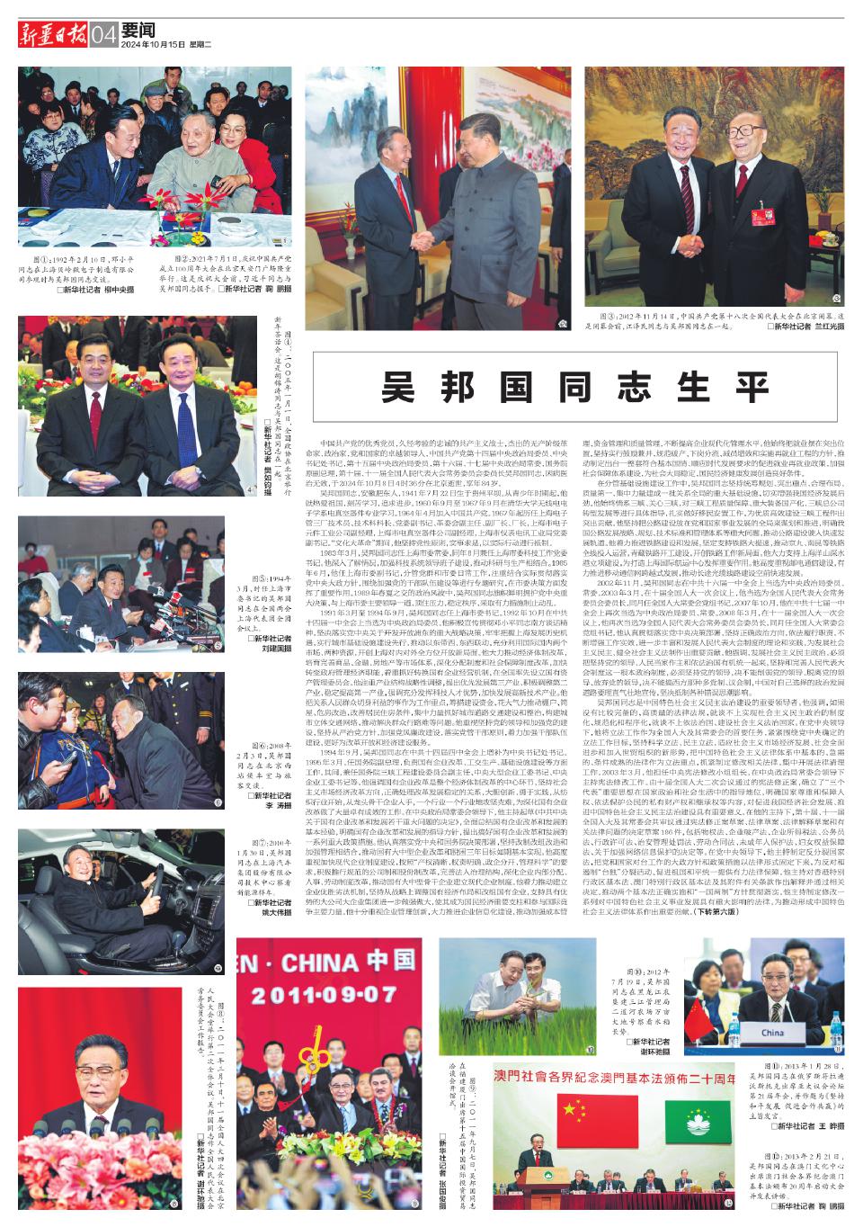吴邦国同志生平