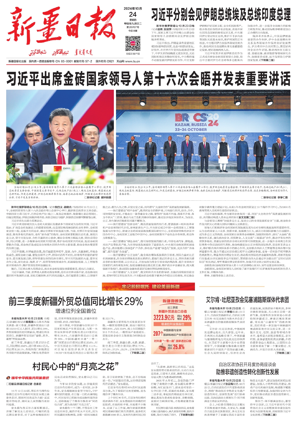 本报乌鲁木齐10月23日讯 石榴云/新疆日报记者陈蔷薇从乌鲁木齐海关获悉:前三季度,新疆外贸进出口总值3223.9亿元人民币,同比增长29%,外贸规模创历史同期新高,增速位列全国首位。新疆外贸呈现出“量稳、质升、蓄势”的发展态势。