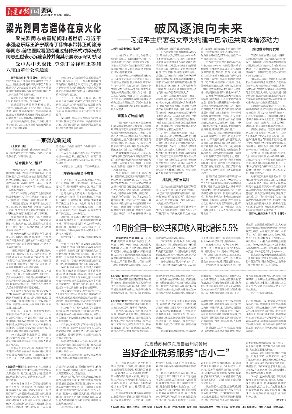 10月份全国一般公共预算收入同比增长5.5%