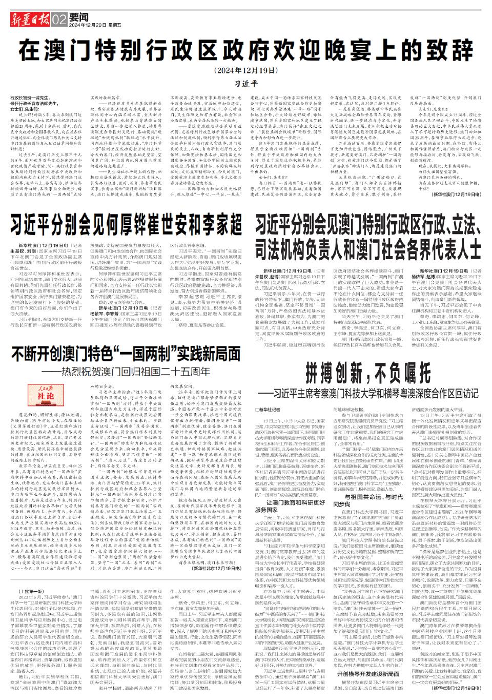 习近平分别会见澳门特别行政区行政、立法、司法机构负责人和澳门社会各界代表人士
