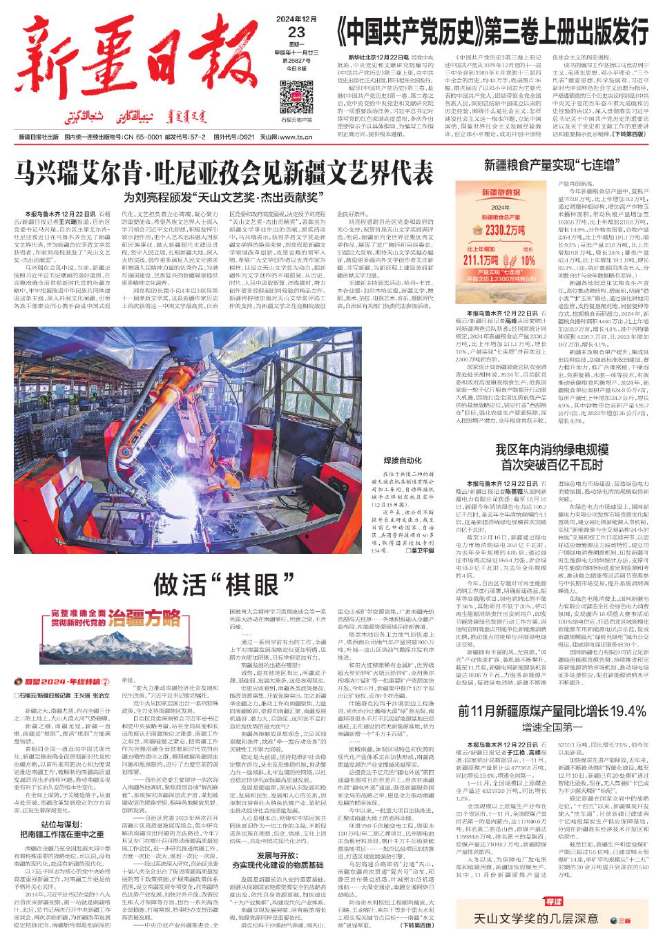 本报乌鲁木齐12月22日讯 石榴云/新疆日报记者于江艳、高峰报道:国家统计局数据显示,1—11月,新疆原煤产量累计达47736.8万吨,同比增长19.4%,增速全国第一。
