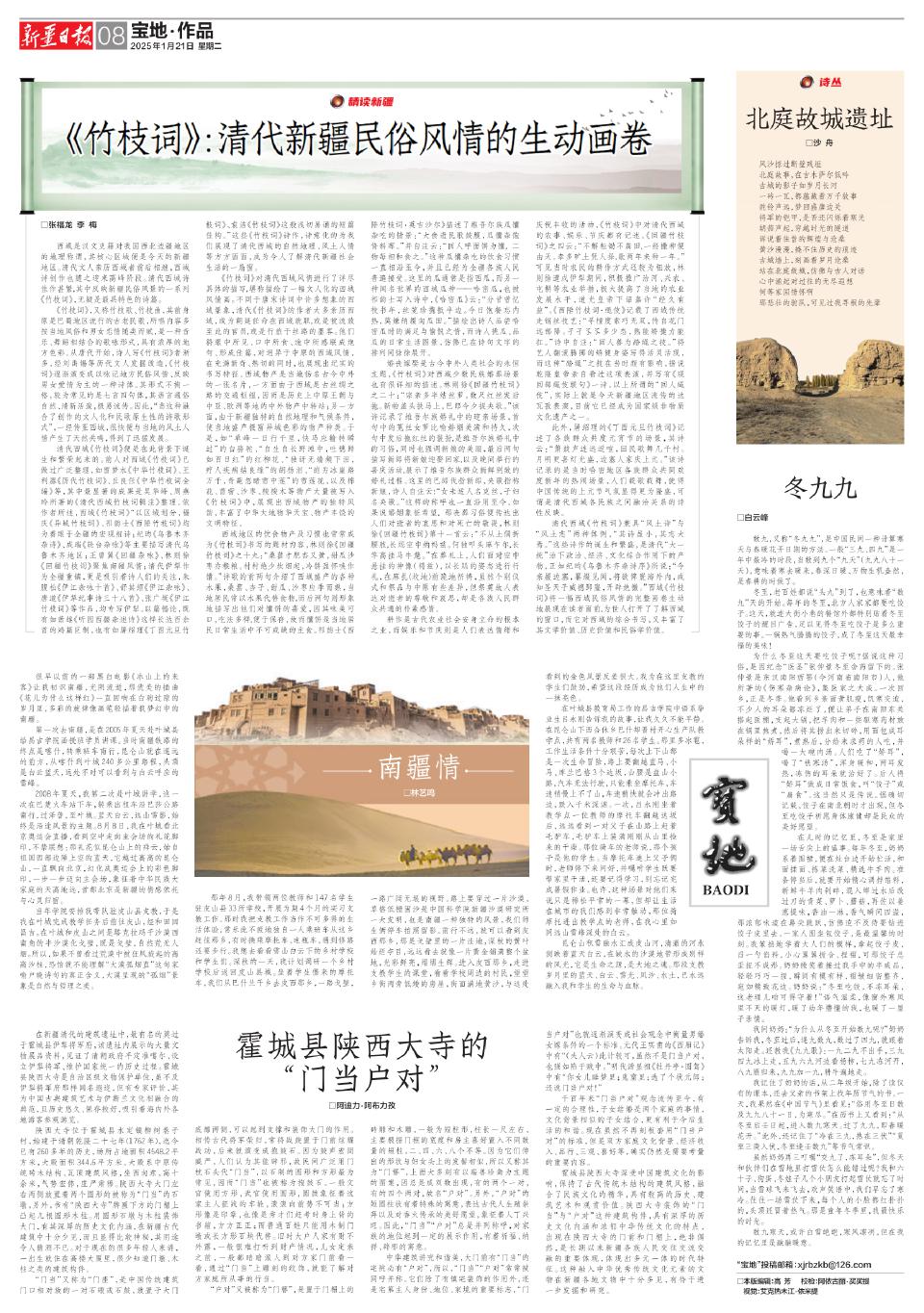 西域是汉文史籍对我国西北边疆地区的地理称谓,其核心区域便是今天的新疆地区。清代文人亲历西域者前后相继,西域诗创作也随之迎来高峰阶段。清代西域诗佳作甚繁,其中反映新疆民俗风景的一系列《竹枝词》,无疑是最具特色的诗篇。