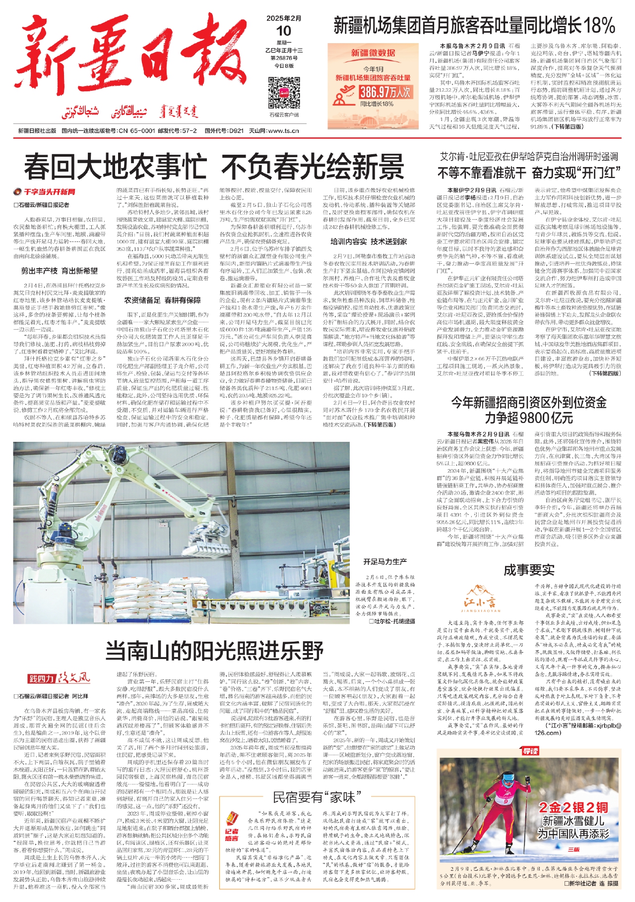 本报伊宁2月9日讯 石榴云/新疆日报记者李杨报道:2月9日,自治区党委副书记、自治区主席艾尔肯·吐尼亚孜前往伊宁县、伊宁市调研重大项目建设及一季度经济社会发展工作。他强调,要完整准确全面贯彻新时代党的治疆方略,按照自治区党委工作要求和自治区两会安排,锚定年度目标,以时不我待的紧迫感和奋勇争先的精气神,不等不靠、看准就干,奋力推动一季度高质量发展“开门红”。
