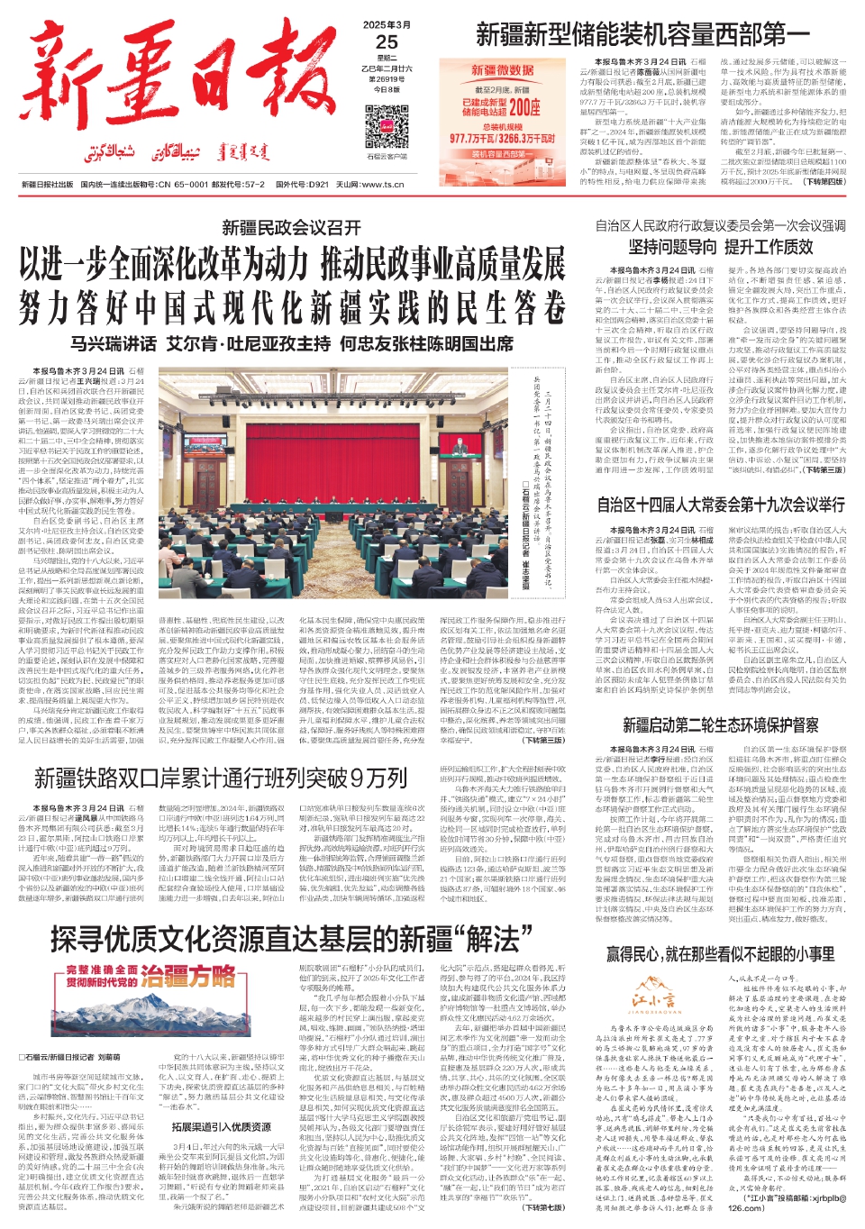 本报乌鲁木齐3月24日讯 石榴云/新疆日报记者陈蔷薇从国网新疆电力有限公司获悉:截至2月底,新疆已建成新型储能电站超200座,总装机规模977.7万千瓦/3266.3万千瓦时,装机容量居西部第一。