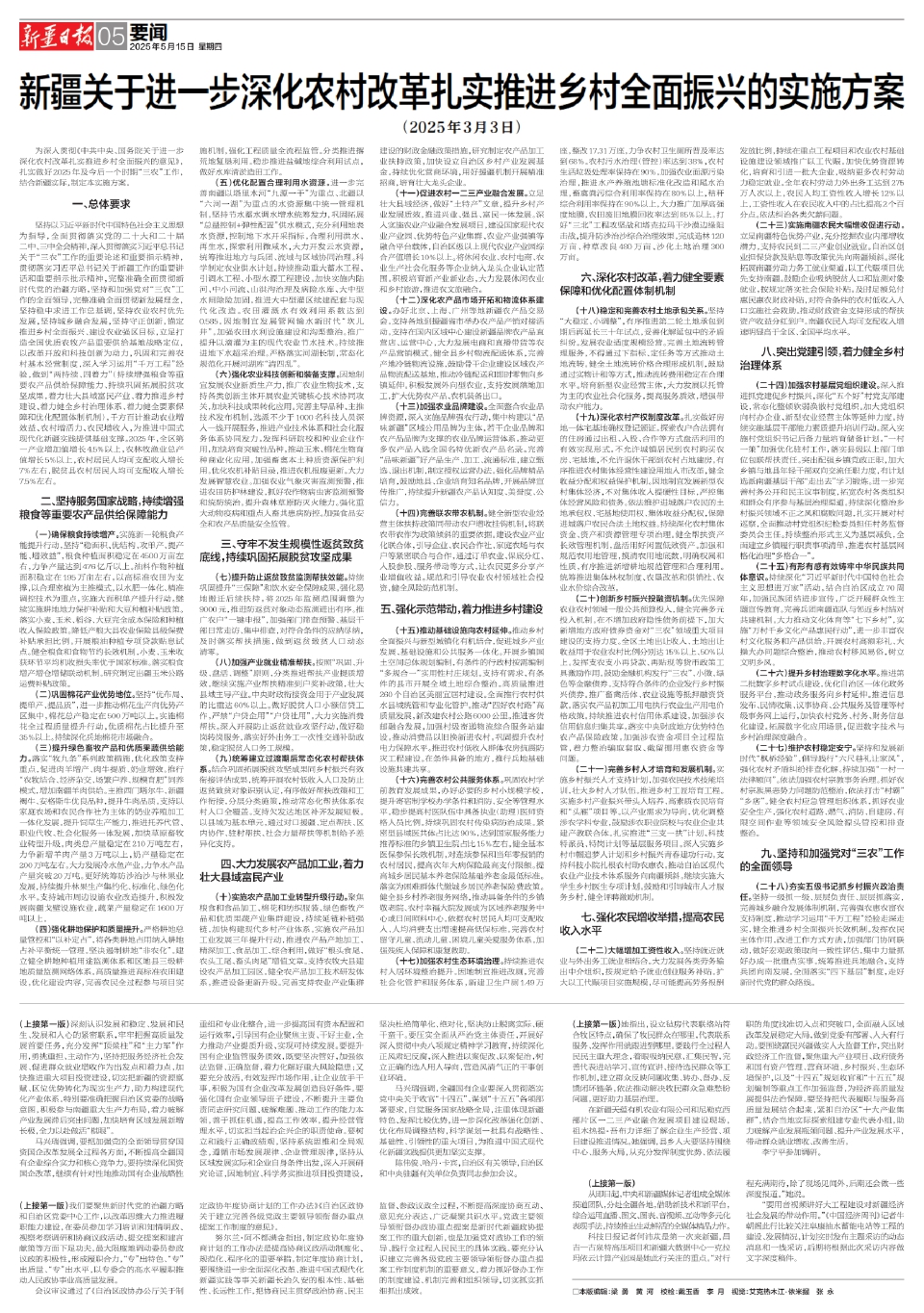 新疆关于进一步深化农村改革扎实推进乡村全面振兴的实施方案
