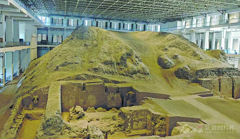 吉木萨尔县北庭高昌回鹘佛寺遗址博物馆内展示的部分西寺遗址。