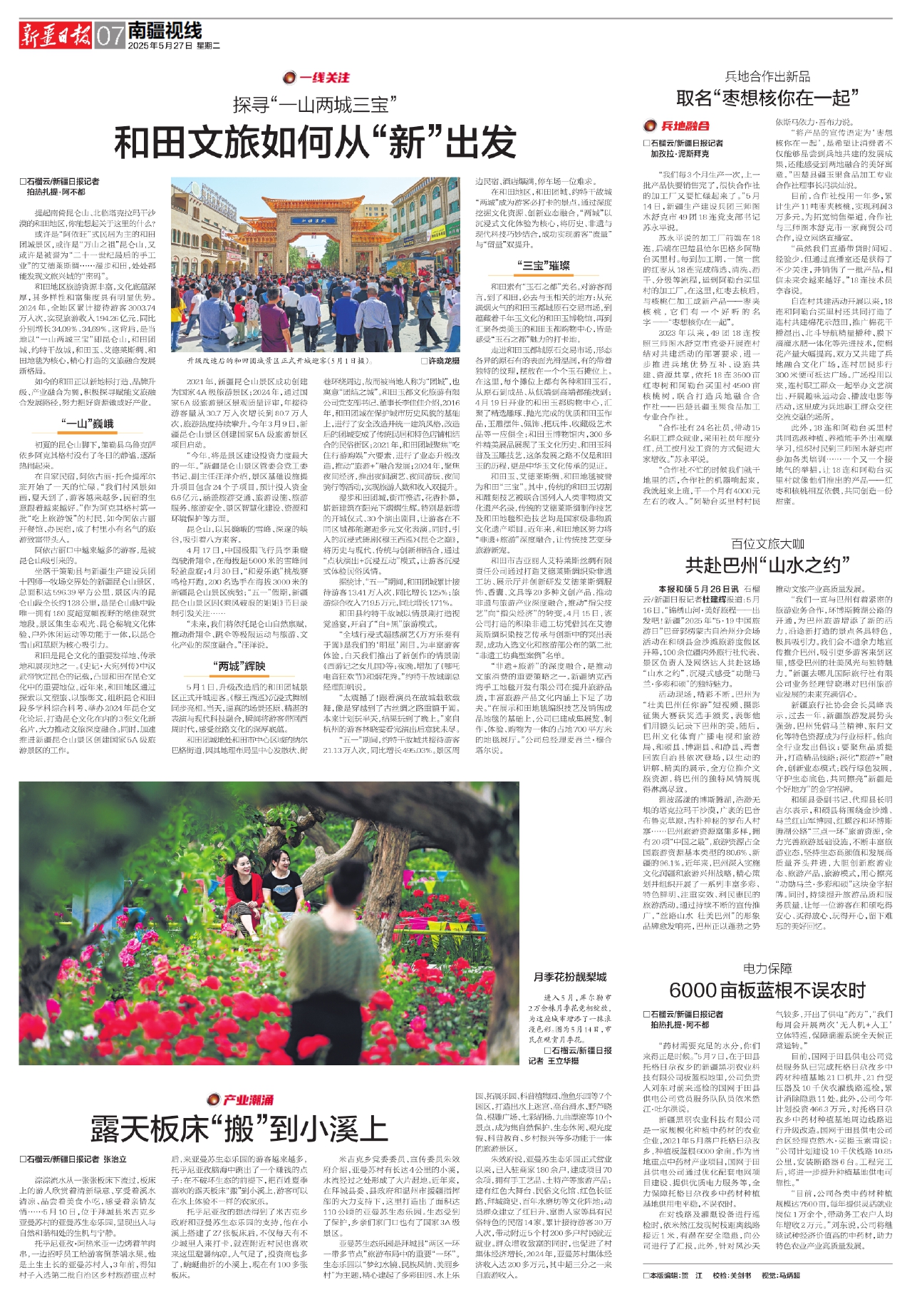 本报和硕5月26日讯 石榴云/新疆日报记者杜建辉报道:5月16日,“锦绣山河·美好旅程——出发吧!新疆”2025年“5·19中国旅游日”巴音郭楞蒙古自治州分会场活动在和硕县金沙滩旅游度假区开幕,100余位疆内外旅行社代表、景区负责人及网络达人共赴这场“山水之约”,沉浸式感受“功勋马兰·多彩和硕”的独特魅力。