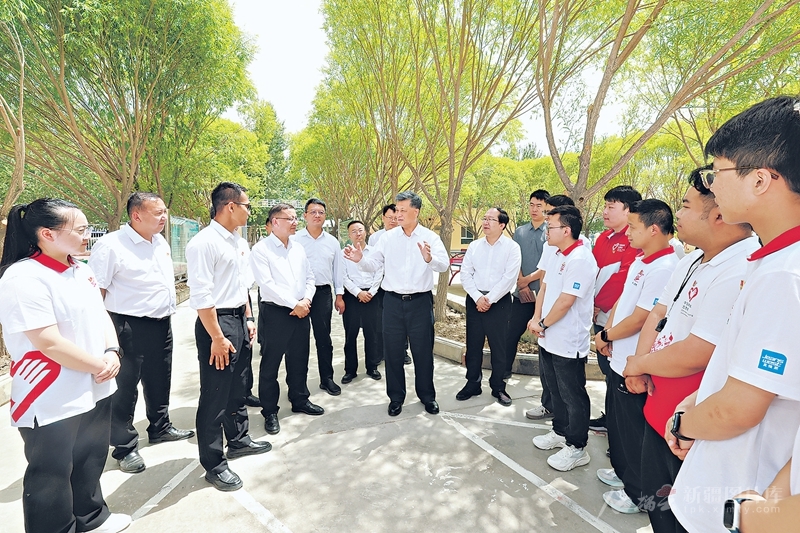 5月27日,自治区党委书记马兴瑞在克孜勒苏柯尔克孜自治州调研。这是马兴瑞来到阿图什市哈拉峻乡谢依特小学,亲切看望戍边支教西部计划志愿者服务队队员,同大家热情交流,关切询问工作生活情况。□石榴云/新疆日报记者崔志坚摄