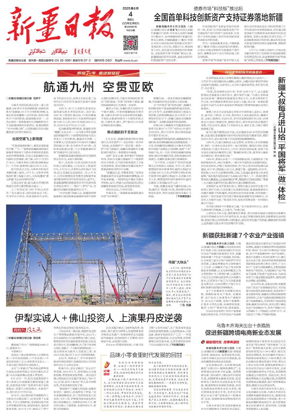 本报乌鲁木齐6月3日讯 石榴云/新疆日报记者王永飞从中国人民银行新疆分行获悉:在中国人民银行新疆分行推动下,由中国建设银行新疆分行牵头主承销,中建新疆建工(集团)有限公司近日成功发行科技创新定向资产支持证券1.79亿元,期限97天、票面利率1.84%,创企业历史债券发行价格新低。这是债券市场“科技板”推出以来,新疆落地的首单科创债,也是全国首单科技创新资产支持证券。
