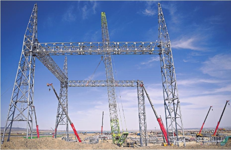 6月3日,国网新疆电力有限公司建设分公司员工在克拉玛依750千伏变电站进行首基构架吊装作业。克拉玛依750千伏输变电工程今年3月开工建设,计划2026年6月建成投产。届时,将为克拉玛依规划打造油气生产等产业集群项目提供坚强电力保障。 □马元摄