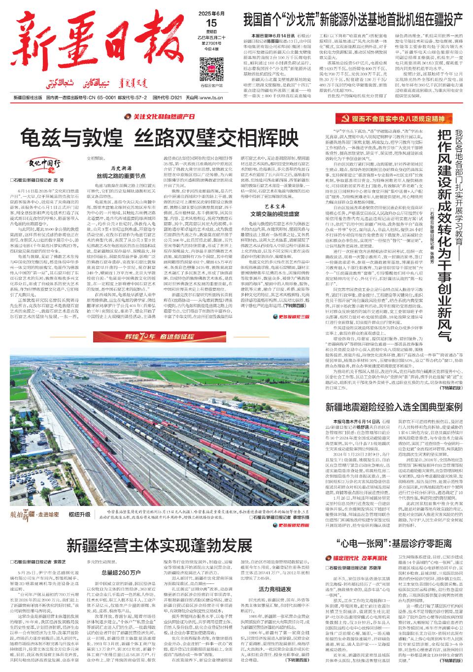 6月14日是2025年“文化和自然遗产日”。一大早,位于拜城县的克孜尔石窟游客服务中心,就迎来了天南海北的游客。该服务中心5月1日正式开门迎客,用全息投影和声光电技术打造了沉浸式剧目《克孜尔的呼唤》,将游客带入古龟兹的丝路画卷中。