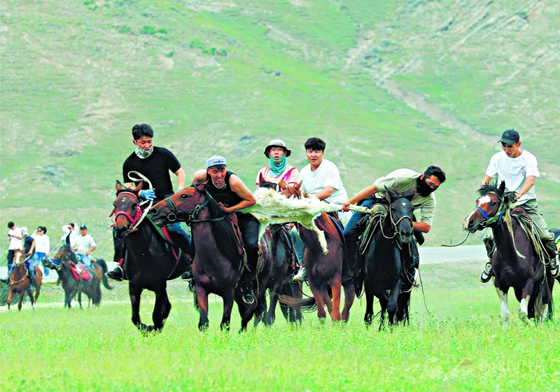 6月14日,牧民在“西北第一村”哈巴河县铁热克提乡白哈巴村也根得空中草原进行刁羊比赛。当天,哈巴河县夏季文旅暨云端牧场“联农带农——云代牧”活动启动,吸引了众多游客。□阿尔达克·拜斯汗摄