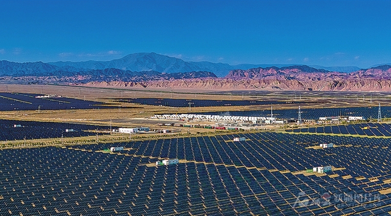 哈密高新技术产业开发区石城子光伏产业园内的光伏蓝海(6月12日无人机摄)。□金炜摄