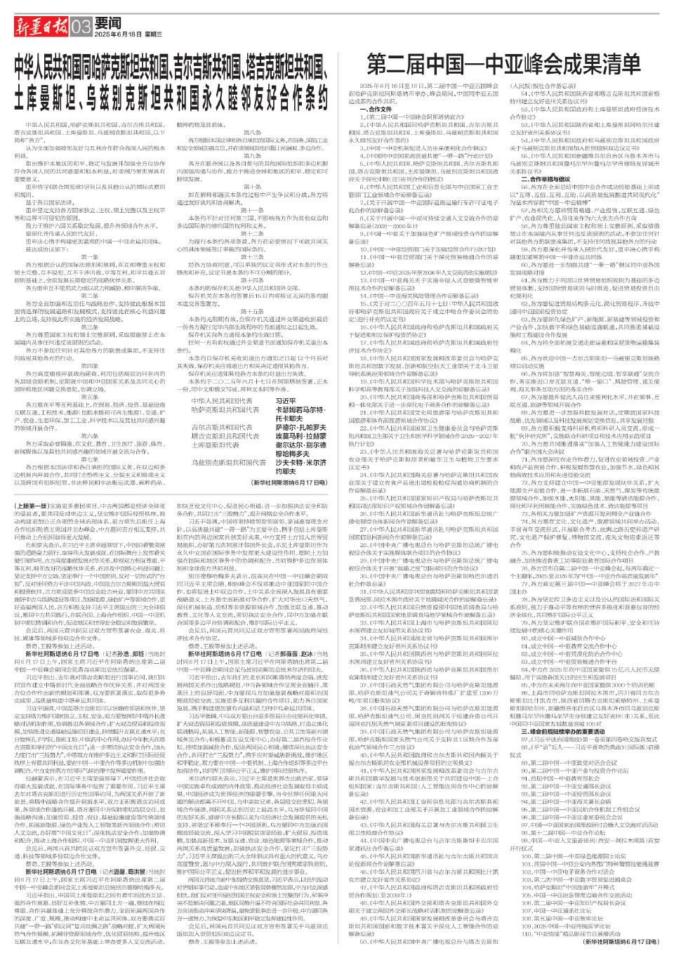第二届中国—中亚峰会成果清单
