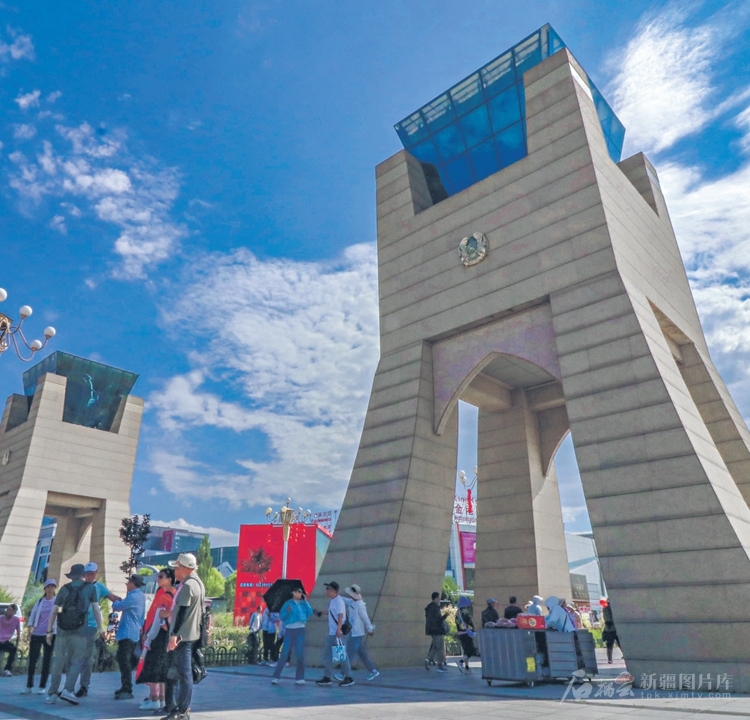 7月3日,游客在中哈霍尔果斯国际边境合作中心参观游览。□冯海森摄
