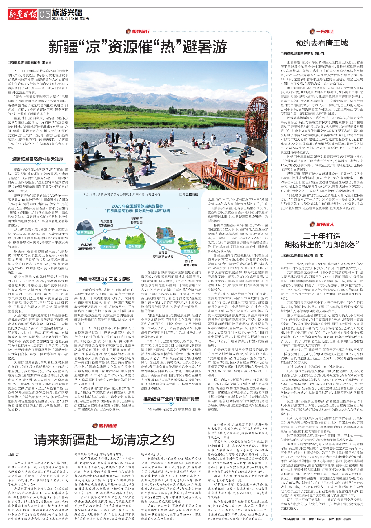 程乙峰认为,新疆各地还应当深化“避暑+气候+康养+旅游”产业融合,延长旅居消费链,将避暑旅游与旅游新业态紧密结合,不断丰富避暑旅游产品供给,增加游客消费市场容量和空间,延长游客在旅游目的地的游玩时间。新疆凭借清凉的气候资源,通过合理规划与开发,使避暑旅游成为经济发展新引擎。