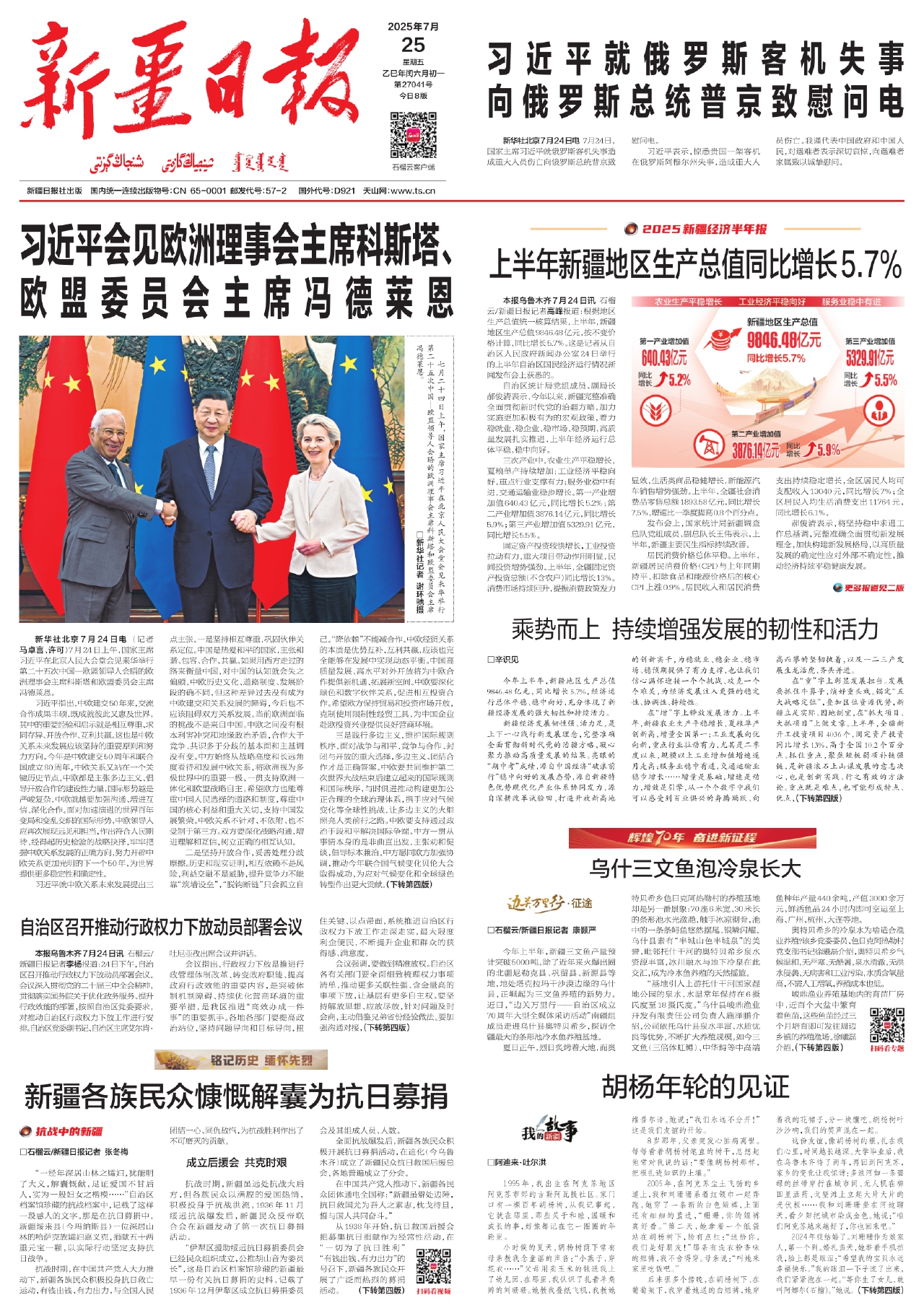 自治区统计局党组成员、副局长郝俊清表示,今年以来,新疆完整准确全面贯彻新时代党的治疆方略,加力实施更加积极有为的宏观政策,着力稳就业、稳企业、稳市场、稳预期,高质量发展扎实推进,上半年经济运行总体平稳、稳中向好。