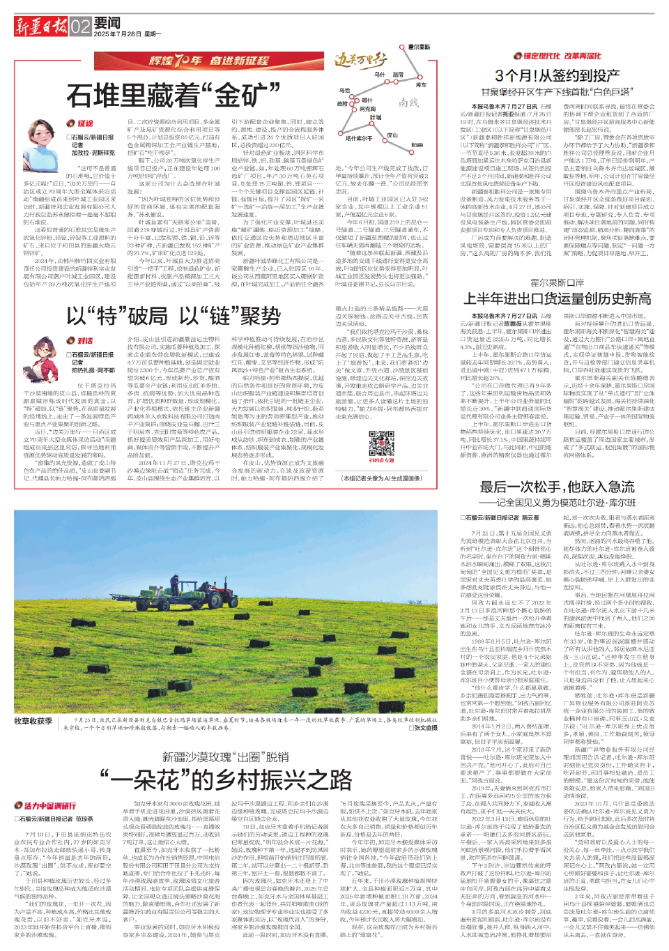7月18日,于田县依纳克特色农业农民专业合作社内,27岁的如克牙木·吾加布拉送走邮政快递小哥,转身盘点库存。“今年销量是去年的两倍,沙漠玫瑰‘出圈’,供不应求,库存要空了。”她说。