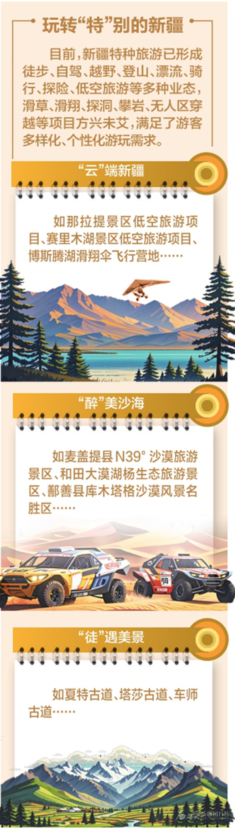 新疆依托独特自然资源,通过业态创新、产品细分和品牌塑造,推动特种旅游高质量发展,为文旅产业注入新活力。