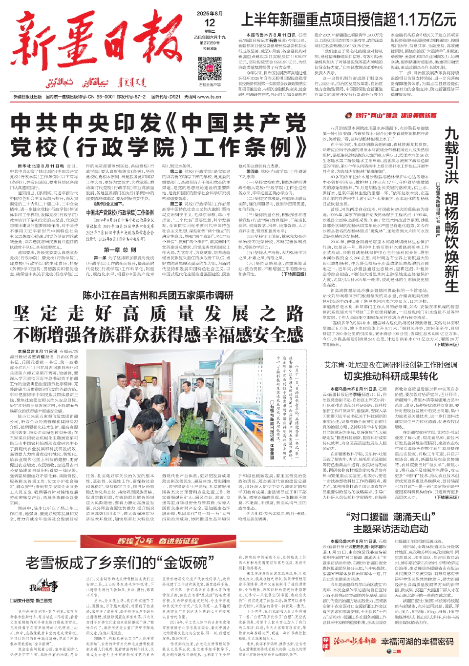 本报昌吉8月11日讯 石榴云/新疆日报记者王兴瑞报道:自治区党委书记、兵团党委第一书记、第一政委陈小江8月11日在昌吉回族自治州和兵团第六师五家渠市调研。他强调,要深入学习贯彻习近平总书记关于新疆工作的重要讲话重要指示批示精神,完整准确全面贯彻新时代党的治疆方略,牢牢把握铸牢中华民族共同体意识主线,聚焦社会稳定和长治久安总目标,坚定走好高质量发展之路,不断增强各族群众的获得感幸福感安全感。