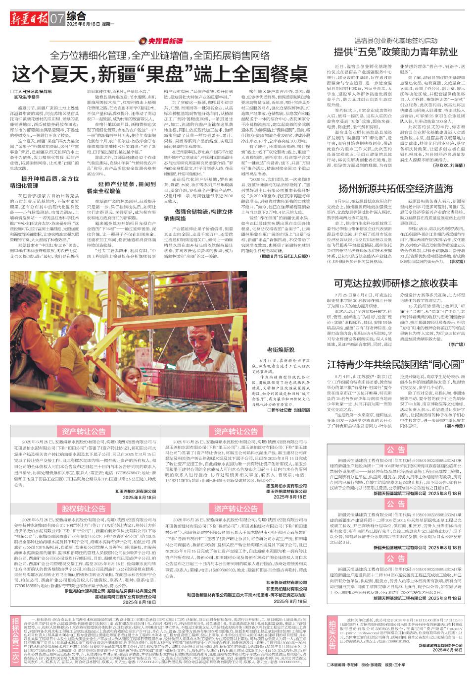 这个夏天,新疆“果盘”再次火遍全国,“金果子”招牌愈加亮眼。这份“甜蜜事业”背后,是新疆以得天独厚的水土条件为依托,发力精细化管理,延伸产业链,拓展销售网络,让水果“出圈”的生动实践。