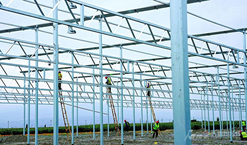 8月19日,工人在位于兵团十二师一〇四团的国际花卉产业园工地施工。该产业园集花卉种植、交易、培育、旅游等于一体,建成后将有力促进兵团花卉产业结构调整、升级。 □王志清摄