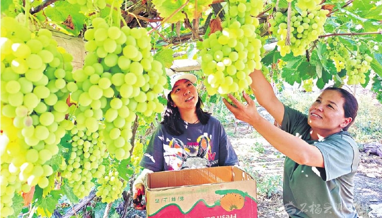 初秋时节,阿瓦提县阿依巴格镇托万克喀格木什村2800亩葡萄迎来丰收。串串饱满多汁的葡萄挂满枝头,果农穿梭在葡萄架下,抢抓农时进行采收。□包良廷摄